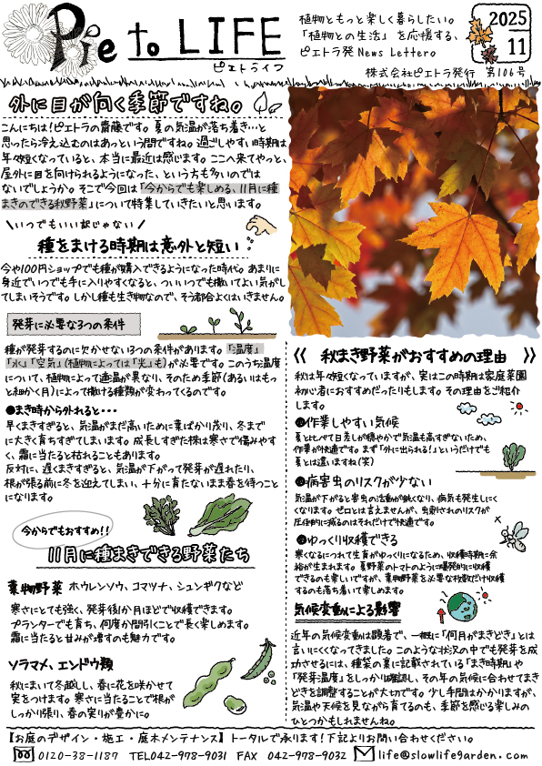 種まきができる時期は意外と短い?秋〜冬でも育てられる野菜たち/天然素材と人工素材〜最近のお庭の素材トレンド